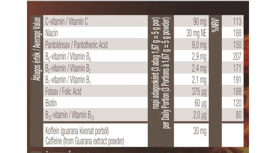 - Maltodextrin, fruktóz – természetes szénhidrátforrások