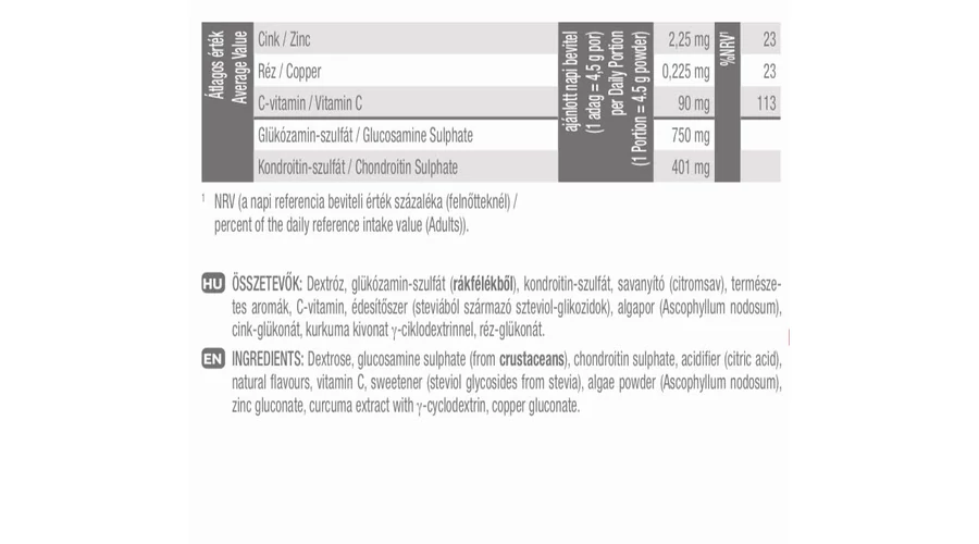 Összetevők (3 g por/nap):