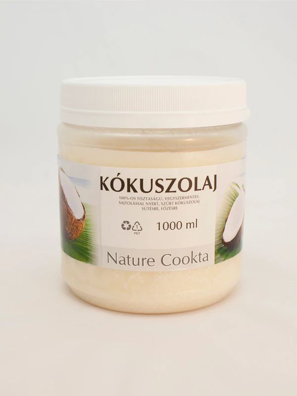 A Nature Cookta Kókuszolaj a szűrt kókuszolaj. A sokféleképpen.felhasználható, 100%-ban természetes alternatív zsiradék előállítása vegyszermentesen, hideg sajtolással történik.