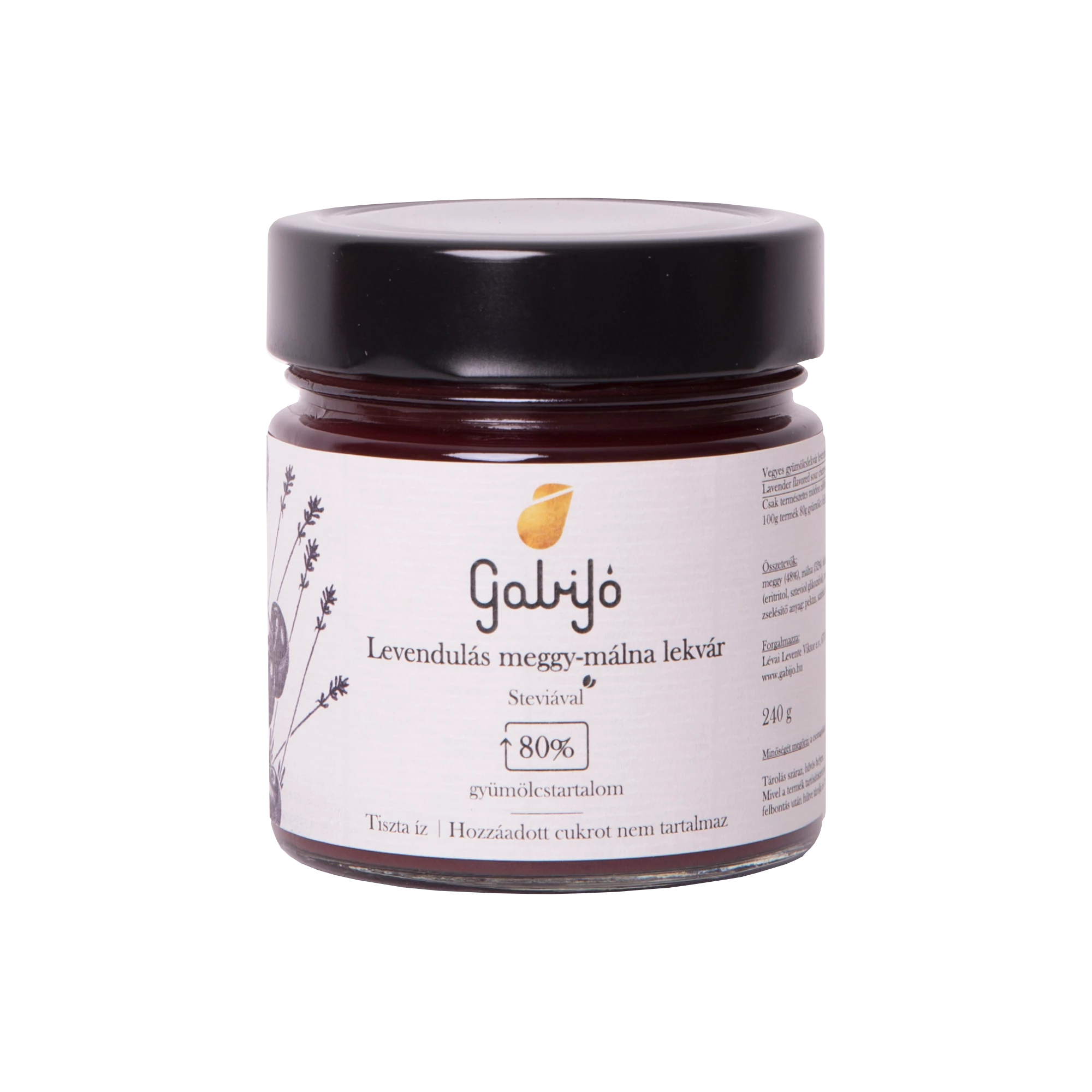 Aszalt gyümölcs, Lekvár - Levendulás Meggy-Málna lekvár steviával 240g - Gabijó