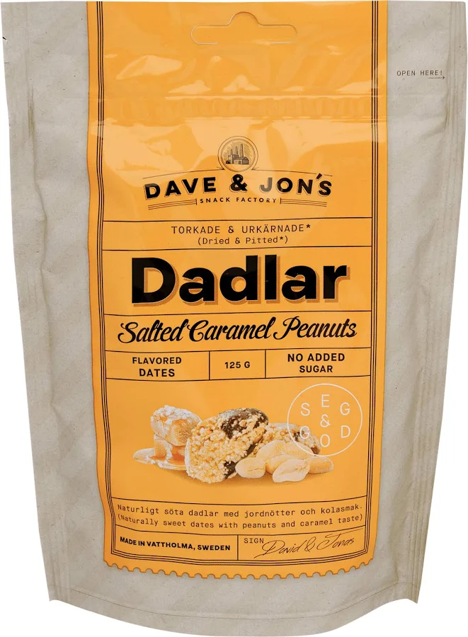 Gluténmentes édességek - Mag nélküli ízesített datolya sós karamell ízben 125 g - Dave & Jon's